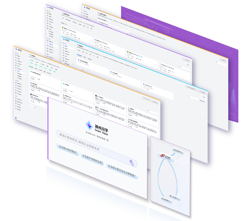 打通GenAI落地企业的算力、模型、知识、应用四大要素,综合解决GenAI工程在选、练、用、管四大环节的问题,旨在为企业的数智化转型提供全套的GenAI智能应用工程流水线。米兰体育问学包括模型算力管理平台、企业私域知识管理平台、AI应用工程平台三大模块,为企业提供更先进、更匹配的大模型,解决了算力上信创适配、融合调度、企业私域大模型高效推理训练问题,同时解决了数据到知识的向量化以及场景应用的轻量化组装问题。